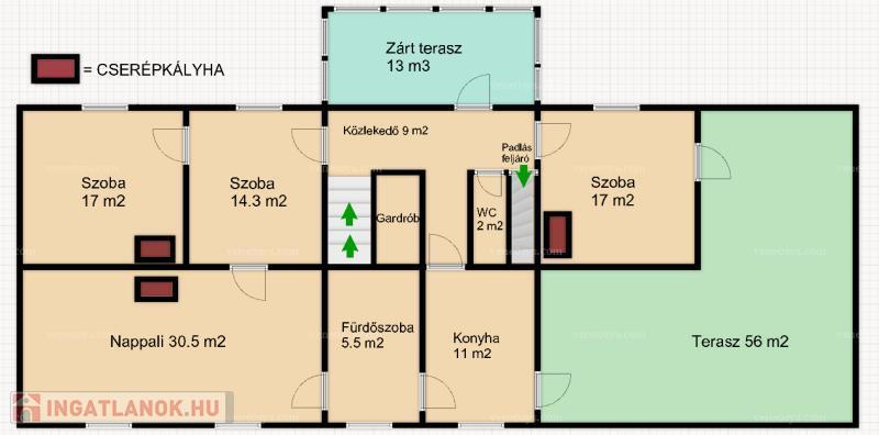 Jelenleg az ingatlan fűtése 3 kiváló állapotú cserépkályhával és egy gáz-cirkó fűtésrendszerrel megoldott, lemezradiátor hőleadókkal.