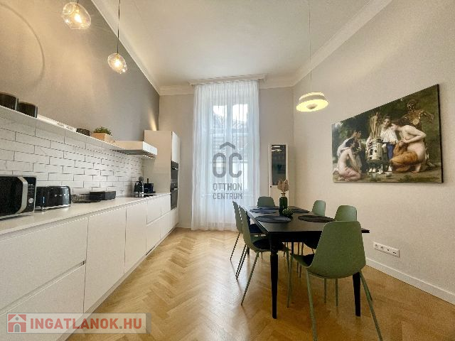 A neobarokk stílusú műemlék épület első emeletén található lakás, 70 m2 alapterületű, amely tágas nappali, konyha-étkező, egy hálószoba, fürdőszoba, külön mellékhelyiség és háztartási helyiség kialakítású, egy minden igényt kielégítő és magas minőségben felújított ingatlan.