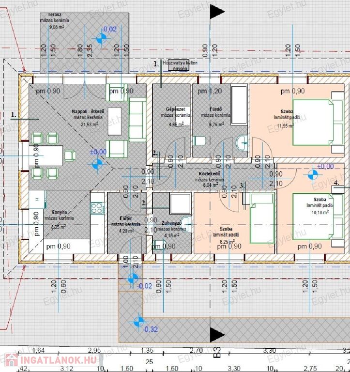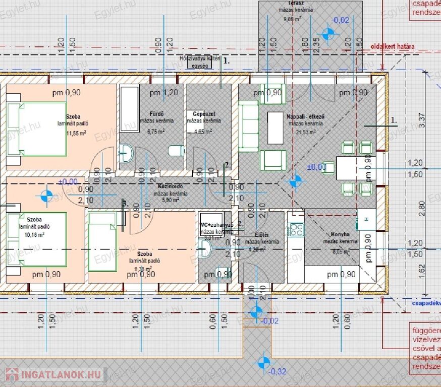 3. lakás: 85,20 m2 + terasz 9 m2 + 143 m2 saját használatú telek terület = 99.990.000 Ft
