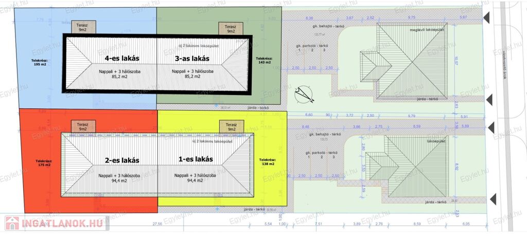 4. lakás: 85,20 m2 + terasz 9 m2 + 195 m2 saját használatú telek terület = 99.990.000 Ft