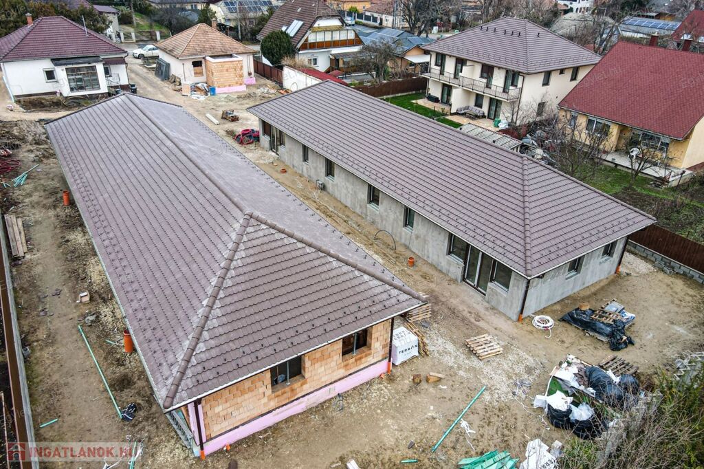 Vasbeton sávalapon 30 cm-es Porotherm falazat nyugszik, fa födémmel, cserép héjalással, alul 12 cm, oldalt 12 cm grafitos, míg a födémen 30 cm-es fújt cellulóz szigeteléssel. A lakások között az elválasztó falak duplán vannak rakva (nincs áthallás), a kertrészek között és a padlástérben is biztosított a szeparáltság. Fontos kiemelni, hogy a lakásokba nem kerül bevezetésre a gáz. A fűtést, a hűtést és a használati meleg vizet Daikin hőszivattyú biztosítja 260L-es melegvíz tárolóval, az A+-os energetikai besorolást hővisszanyerős szellőztetőrendszer(!) biztosítja. A hőleadás helyiségenként szabályozható padlófűtéssel, illetve mennyezeti hűtés/fűtéssel történik. A szobákból így nem foglalnak helyet a radiátorok, nincs szükség klímára sem. A hőszivattyú működését napelemmel lehet segíteni, de ezek nem kerülnek felszerelésre, csupán előkészítésük lesz biztosítva az inverterig. A nyílászárók barna színű, 5 kamrás műanyag ablakok, 3 rétegű üvegezéssel. Hőhídmentes rejtett redőnytokok készülnek melyek elektromos alumínium redőnyt kapnak. A riasztó előkészítését az ár tartalmazza, de a rendszerét és a telepítését nem. Minden lakáshoz 1 db felszíni gépkocsi beálló tartozik, melyet motoros kapun keresztül lehet megközelíteni. A projekt, számos környékbeli referenciával rendelkező beruházó által lesz megvalósítva. A beruházó tőkeerős, nem a vevők pénzéből építi fel az ikerházat.Az építkezés elkezdődott és a tervezett ütemben halad.
