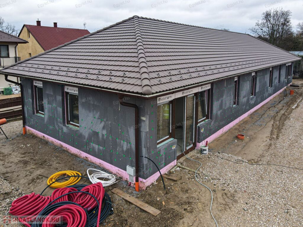 Vasbeton sávalapon 30 cm-es Porotherm falazat nyugszik, fa födémmel, cserép héjalással, alul 12 cm, oldalt 15 cm, míg a födémen 30 cm-es fújt cellulóz szigeteléssel. A lakások között az elválasztó falak duplán vannak rakva (nincs áthallás), a kertrészek között és a padlástérben is biztosított a szeparáltság. Fontos kiemelni, hogy a lakásokba nem kerül bevezetésre a gáz. A fűtést, a hűtést és a használati meleg vizet Daikin hőszivattyú biztosítja 260L-es melegvíz tárolóval, az A+-os energetikai besorolást hővisszanyerős szellőztetőrendszer(!) biztosítja. A hőleadás helyiségenként szabályozható padlófűtéssel, illetve mennyezeti hűtés/fűtéssel történik. A szobákból így nem foglalnak helyet a radiátorok, nincs szükség klímára sem. A hőszivattyú működését napelemmel lehet segíteni, de ezek nem kerülnek felszerelésre, csupán előkészítésük lesz biztosítva az inverterig. A nyílászárók barna színű, 5 kamrás műanyag ablakok, 3 rétegű üvegezéssel. Hőhídmentes rejtett redőnytokok készülnek melyek elektromos alumínium redőnyt kapnak. A riasztó előkészítését az ár tartalmazza, de a rendszerét és a telepítését nem. Minden lakáshoz 1 db felszíni gépkocsi beálló tartozik, melyet motoros kapun keresztül lehet megközelíteni. A projekt, számos környékbeli referenciával rendelkező beruházó által lesz megvalósítva. A beruházó tőkeerős, nem a vevők pénzéből építi fel az ikerházat.Az építkezés elkezdődott és a tervezett ütemben halad.