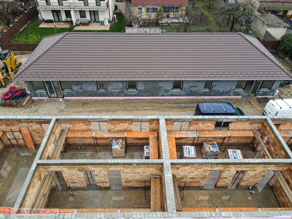Az aszfaltozott utcában elhelyezkedő összközműves telek utcafronti részén felújításra kerül egy meglévő családi ház, és az ikerház e mögött fog elhelyezkedni. Az ingatlan társasházként fog funkcionálni, tehát az albetétek saját helyrajzi számmal, LAKÁSKÉNT fognak szerepelni az ingatlannyilvántartásban.