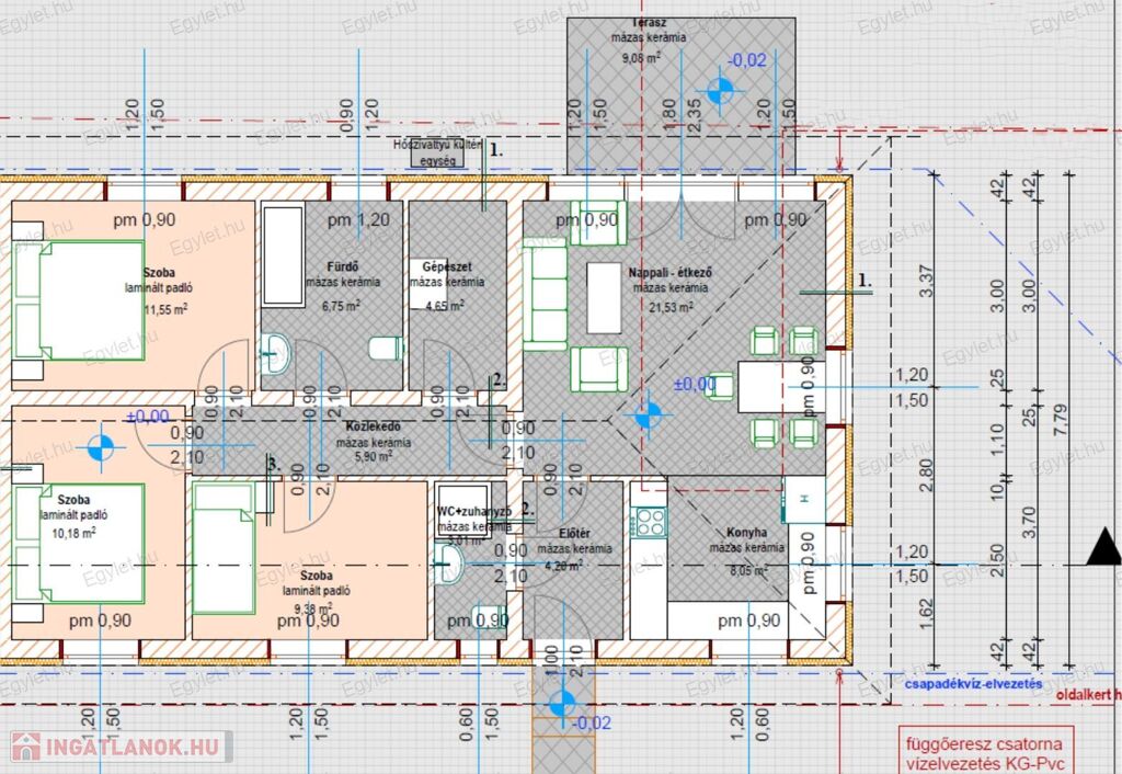 1. lakás: 94,4 m2 + terasz 9 m2 + 175 m2 saját használatú telek terület = ELKELT
