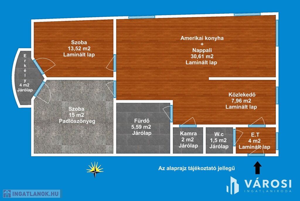 A lakás délkelet - délnyugati fekvésű, napfényes ingatlan.