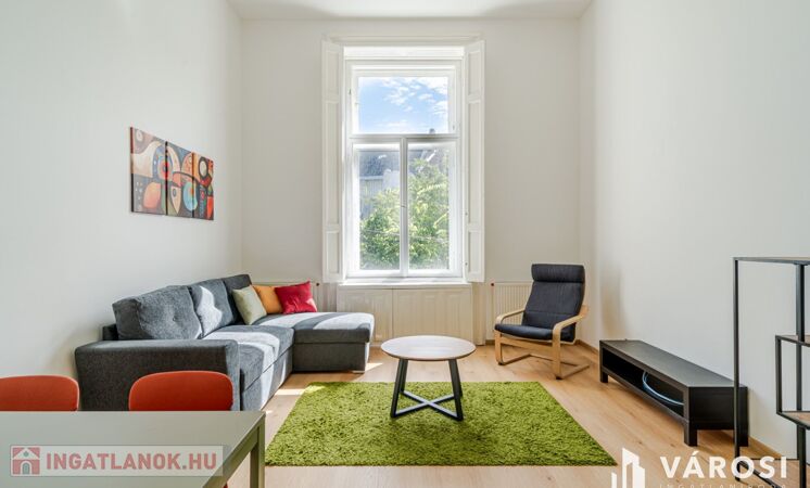 Ritka lehetőség a belvárosban: egy ELSŐ EMELETI 86 nm-es polgári lakás, amelyet teljes körű műszaki és esztétikai felújítás után 2 önálló és külön bejáratú lakássá alakítottak. Mindkettő vadonatúj, ízlésesen berendezett teljesen gépesített.