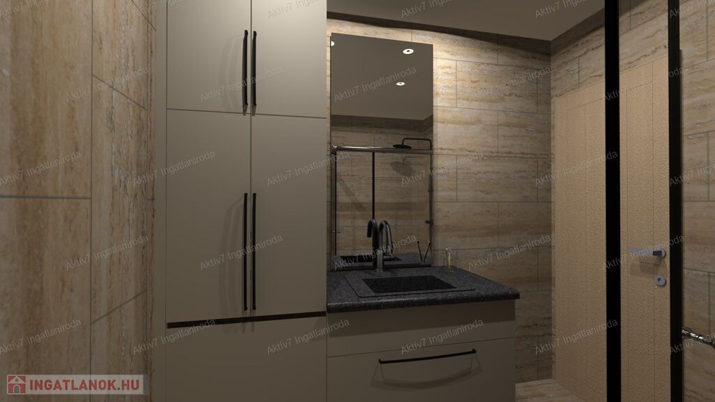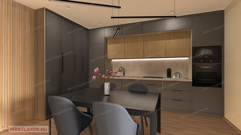 Teljesen készen van, burkolva, festve, elektromos redőnnyel, beltéri ajtókkal, szaniterekkel felszerelve kínáljuk. A vételár a konyhaszekrényt NEM tartalmazza.