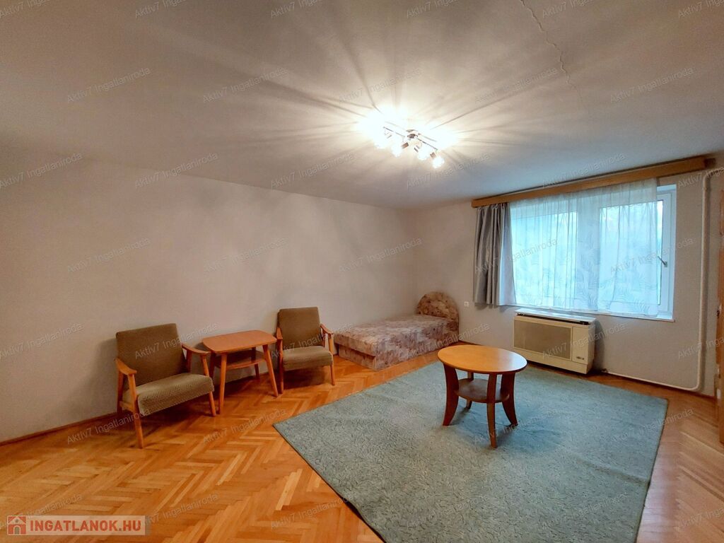 - Egy nagy méretű szoba és egy tágas konyha: a konyha akár szobává alakítható, így amerikai konyhás nappali + egy külön szoba is kialakítható.