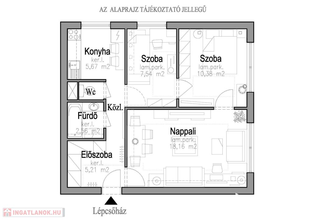 - Nappali: ~18,20 m2