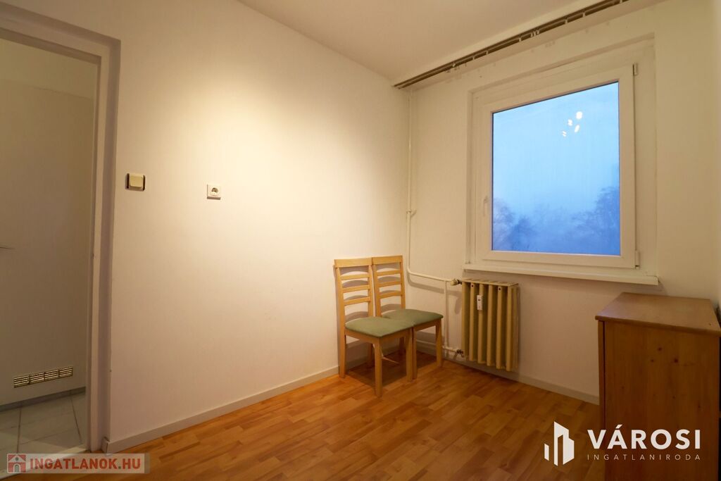 Eladó Szegeden, a Kereszttöltés utca 10 szám alatti, negyedik emeleti lakás. 2018-ban kicserélték a bejárati ajtót és a külső nyílászárókat, hőszigetelő műanyag nyílászárókra. A nappali és a mellette lévő szoba ablakai redőnnyel kerültek beépítésre. Ekkor készült el az új konyhabútor és a szobákban új laminált padlót raktak le.