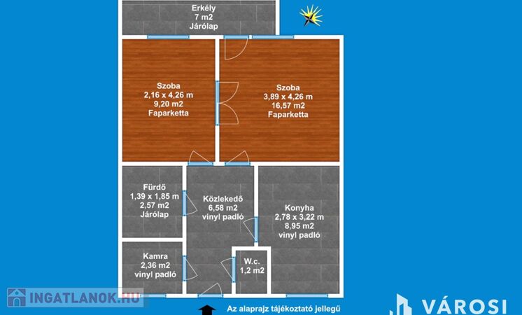 A lakás délkeleti tájolása, miatt rendkívül napfényes ingatlan.