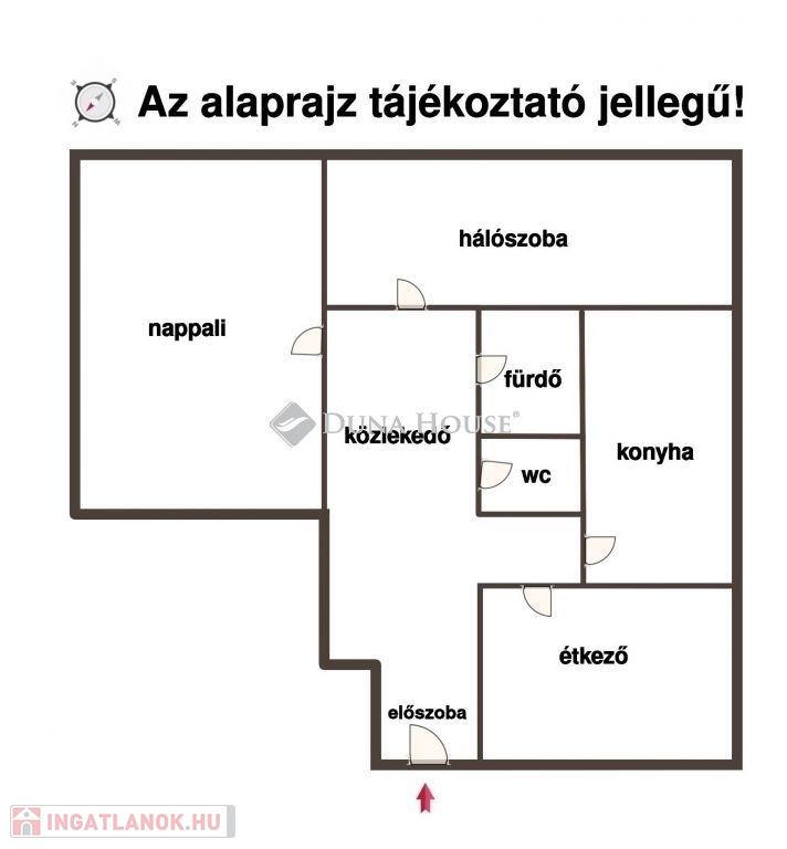 elosztás: 2 szoba + nappali