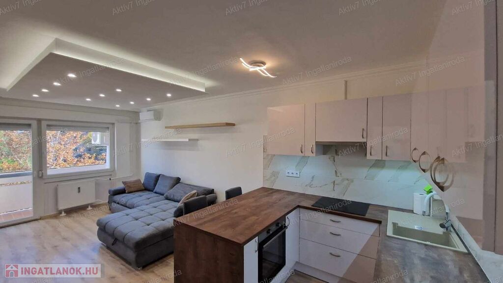 - amerikai konyhás nappali+2 szoba: a lakás átalakított, az új, modern konyhabútor (beépített gépekkel) a nappaliba került beépítésre, így tovább 2 hálószoba alakult ki (új, mindenre garancia van, de a lakás BÚTOROZATLAN)