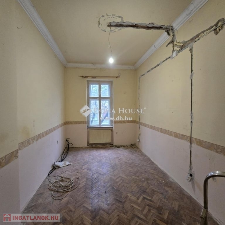 Az ingatlan teljes felújítását megkezdték, a villanyvezetékek, kapcsolók cseréje megtörtént, a további szakipari munkákra előkészítve.