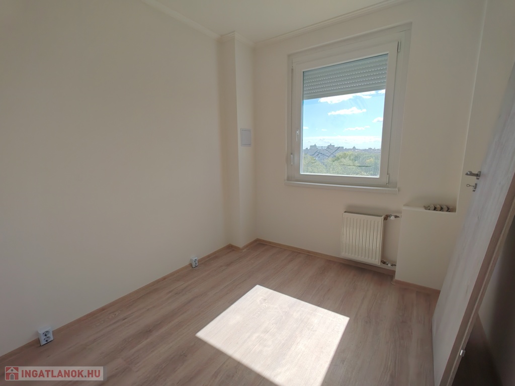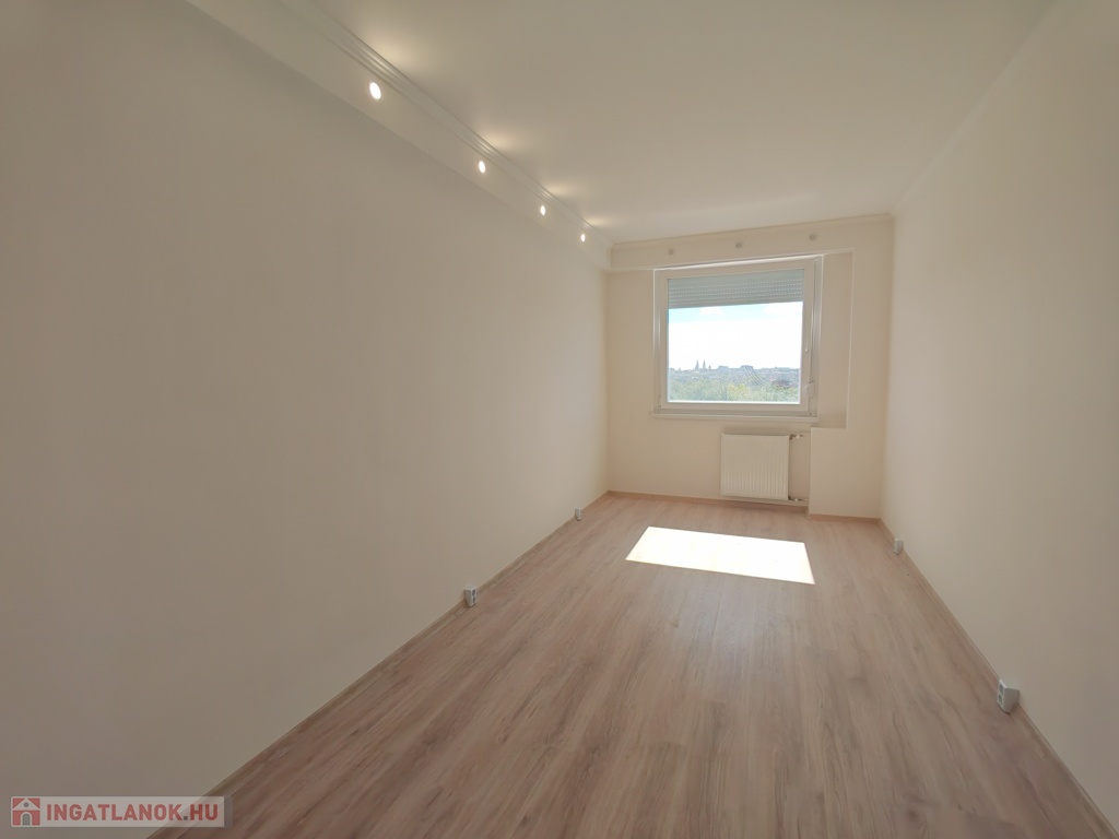 Szeged - Északi városrész, Cső utcában, panelprogramos, akadálymentesített épület 10.emeletén, 60nm-es, nappali + 2 külön bejáratú szobás, városra néző panorámával, erkélyes, teljes körűen felújított, külön fürdővel, wc-vel, beépített gardróbbal rendelkező, gépesített, alacsony rezsijű (CSOK-ra, Otthon Start programra alkalmas) egyedi mérésű távfűtéses panellakás, liftes, rendezett épületben tehermentesen eladó.