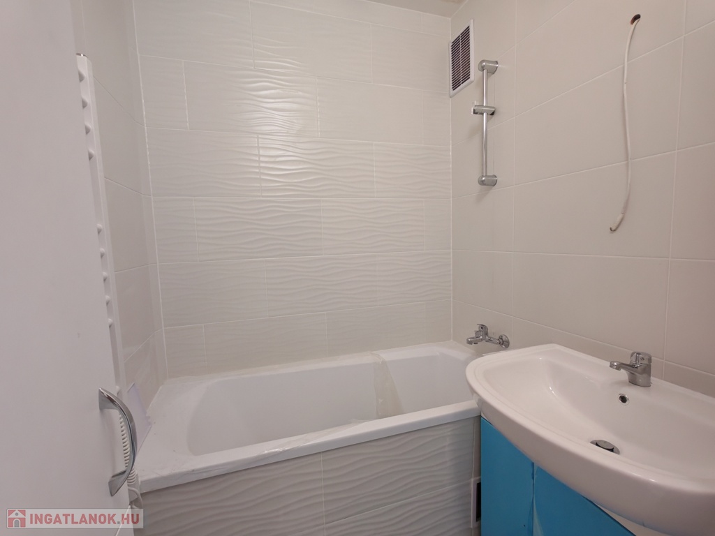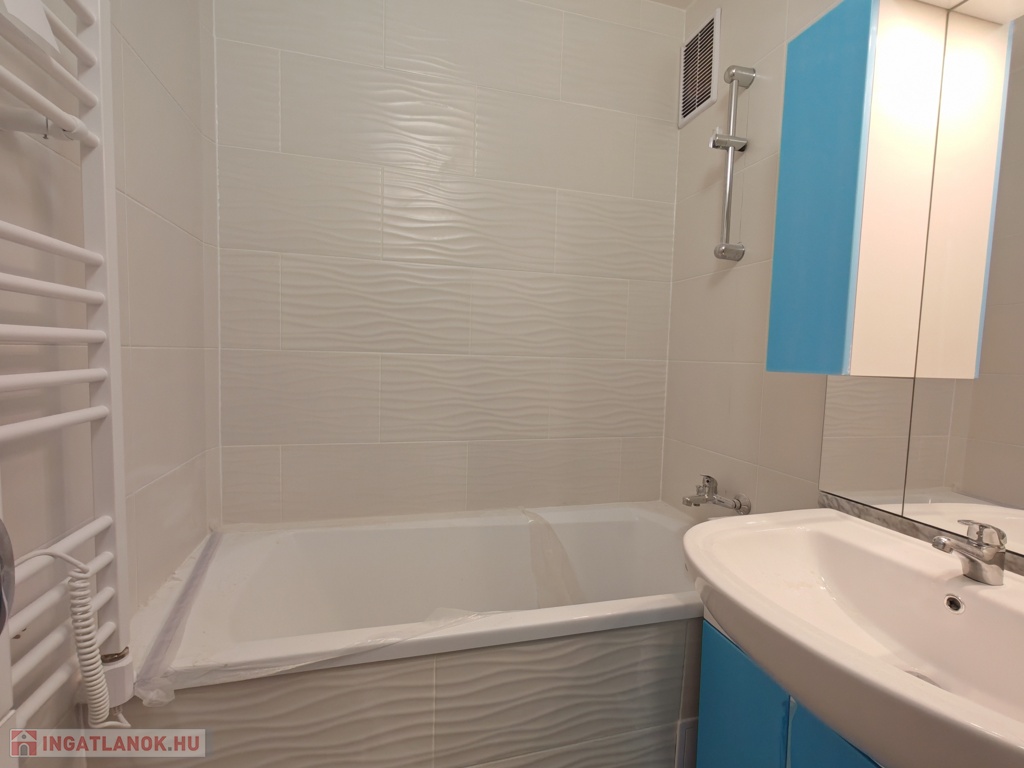 (A képek egy ugyanilyen minőségben, ugyanazokkal az anyagok felhasználásával felújított, más méretű, elrendezésű lakások képei (variációs lehetőségei), jelenleg még a burkolatok, színek, és minden egyéb, alaprajzokon felvázolt lehetőségek szerint módosítható megegyezés alapján, illetve zuhanyzó vagy kád is választható a fürdőszobába igény szerint.)