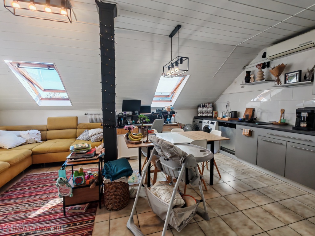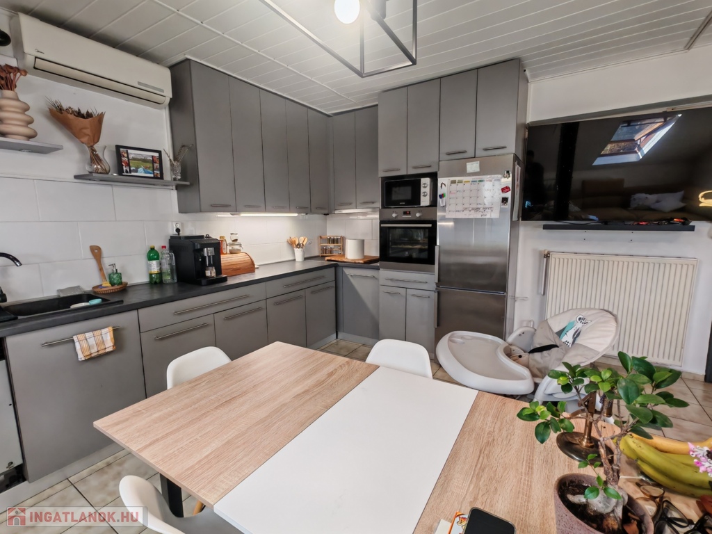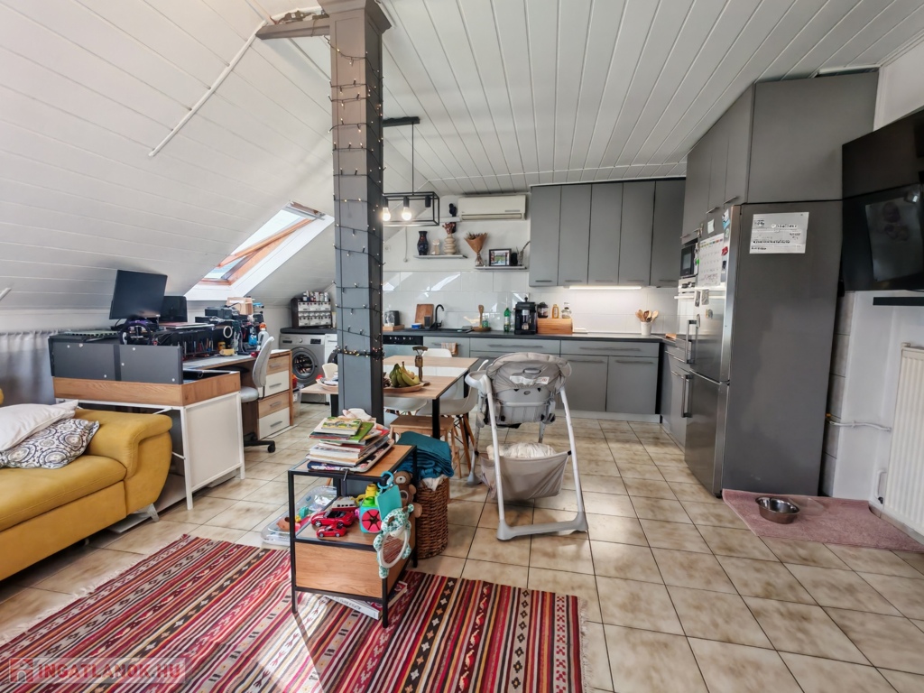 Szeged - Móraváros, Csöndes utcában, 80-as évek végén épült, rendezett, 8 lakásos társasházban, 3.emeleti, 50/70 nm-es, amerikai konyhás nappali + 2 külön nyíló szobás, külön fürdővel, wc- vel rendelkező, cirkó fűtésű, klimatizált, nagyon alacsony rezsijű téglalakás eladó. A lakáshoz tartozik az egyik szobából elérhető kb 10 nm-es padlástér, amely jelenlegi állapotában hobbi-, tárolószobaként, viszont kisebb átalakítás után akár plusz szobaként is használható. A lakás rezsije kedvezően alakul: közös ktsg.: 11.500Ft/hó, fűtés költsége leghidegebb téli hónapokban maximum 15.000Ft/hó volt. A társasházban közös udvar és közös tároló is található. Parkolni az utcán lehet, de nem fizetős. A környék csendes, a belváros 7 perc sétányira, Napfénypark bevásárló központ (Obi, Tesco, Lidl, Aldi, KFC, Jysk, stb.) 5 perc sétányira található. Saját részre, illetve befektetési céllal vásárlóknak is kitűnő választás lehet.
