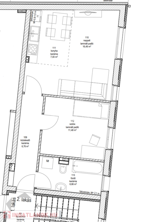 Társasházban változatos alapterületű lakások köthetőek le 22 m2-től -78 m2-ig, amelyek 31,6 -108,7 M. forintos áron vásárolhatóak meg.