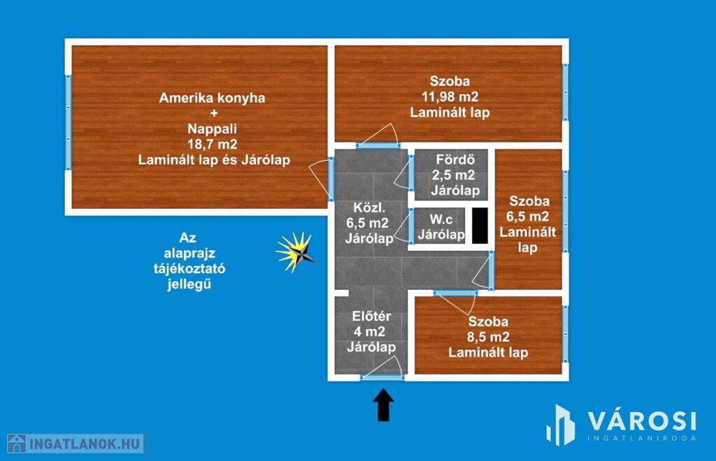 A lakás 1 db amerikai konyhás nappalival, 3 db hálószobával, 1 db fürdőszobával, külön Wc-vel, közlekedővel, előtéttel rendelkezik. Az ingatlan elhelyezkedésre, kialakítása miatt rendkívül sokrétű a felhasználása - akár lakás, vagy befektetési célra -, amely maximálisan kiemeli ezt az ingatlant az átlagos lakások sorából és egyedülálló választássá teszi azt.