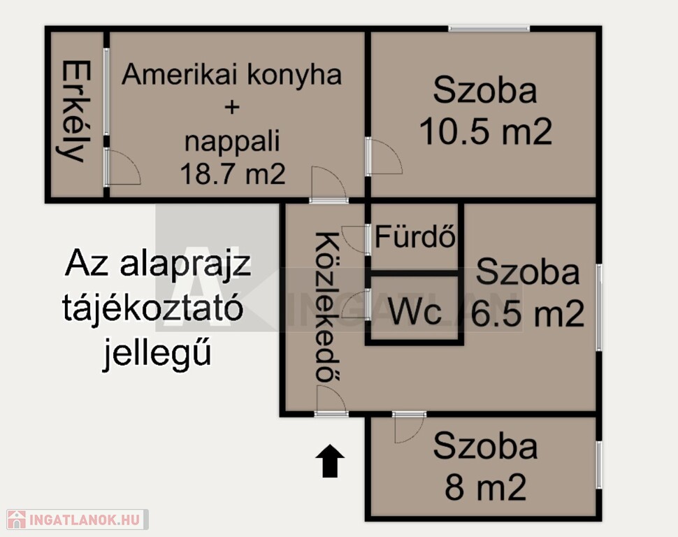 - 64 m2. Elosztását tekintve amerikai konyhás nappali és három külön nyíló szoba.