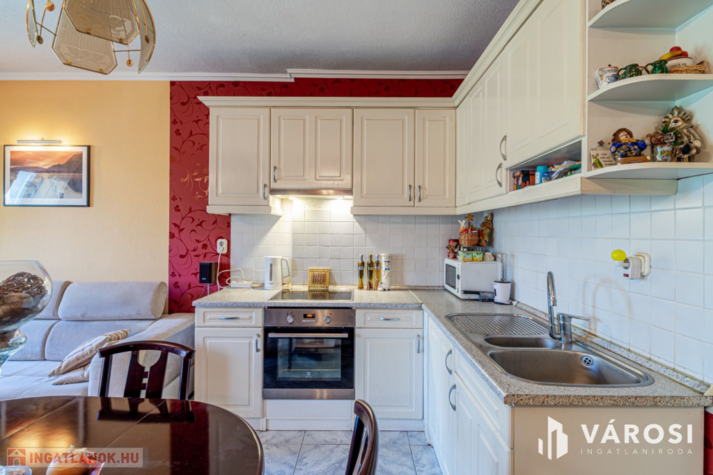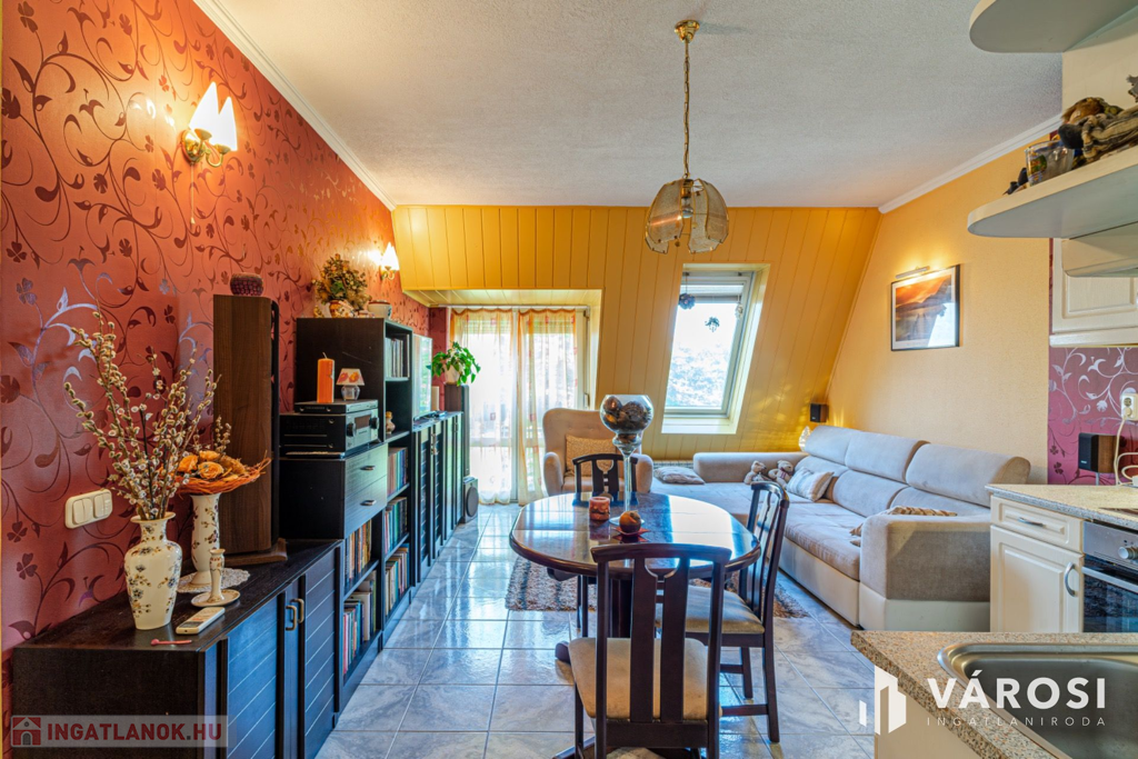 Szeged Móraváros városrészében, a Felhő utcában, eladó, egy 1996 - ban épült negyedik emeleti, normál állapotú 65 nm - es, tégla építésű, amerikai konyha nappal plusz két különálló szobás, dupla franciaerkélyes lakás.