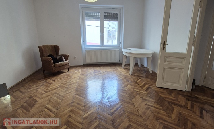 Szeged-Belváros, Kálvin térnél a Madách utcában, 79 m2-es, 2+1 külön bejáratú szobás, magasföldszinti, cirkó fűtésű, szép állapotú téglalakás tehermentesen, azonnal költözhetően eladó. A 9 lakásos társasház kb. 80 éve épült két házként. Egy utcafronti 3 lakásos és egy belső udvari, 3 szintes, 6 lakásos épületként. Az ingatlan a belső házban található, így csendes, pormentesebb. Belmagassága 3 m, falai vastagok. A közelmúltban mindkét ház tetőszerkezetét teljesen felújították. A lakásban 2000-ben felújították a villanyhálózatot, konyhát, fürdőszobát, burkolatokat és a gázhálózatot. Vaillant típusú, zárt égésterű kombi kazán biztosítja a meleg vizet és a fűtést radiátor hőleadókkal, szabályzókkal. 3 éve az összes ablakot dupla üveges műanyagra cserélték. Elosztása jó és alakítható is. Tágas előszobából nyílik minden helyiség: kisszoba, WC, fürdő, konyha (nagy spájzzal) és a két nagyszoba (26 m2, 24 m2). Remek választás lehet, akik a belvárosba vágynak, de irodának, rendelőnek is kiváló. Irányár: 69,9 mFt