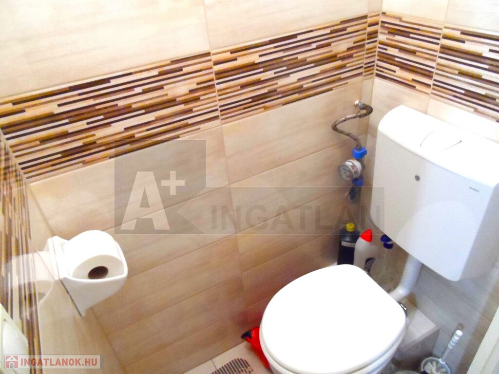 -tágas fürdőszoba tusolóval WC-vel