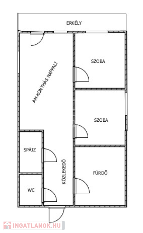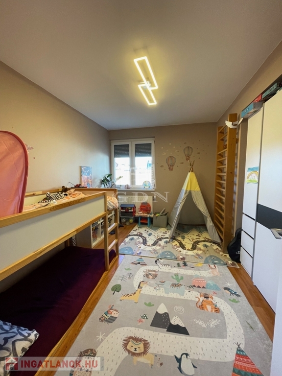 Az amerikai konyhás nappaliból nyilik a hálószoba, illetve innen jutunk ki az udvar felé néző nagy erkélyre is. A gyerekszoba is tágas, jól rendezhető.A fürdő és a wc külön helyiségben található, és az ingatlanban helyet kapott egy spájz is.