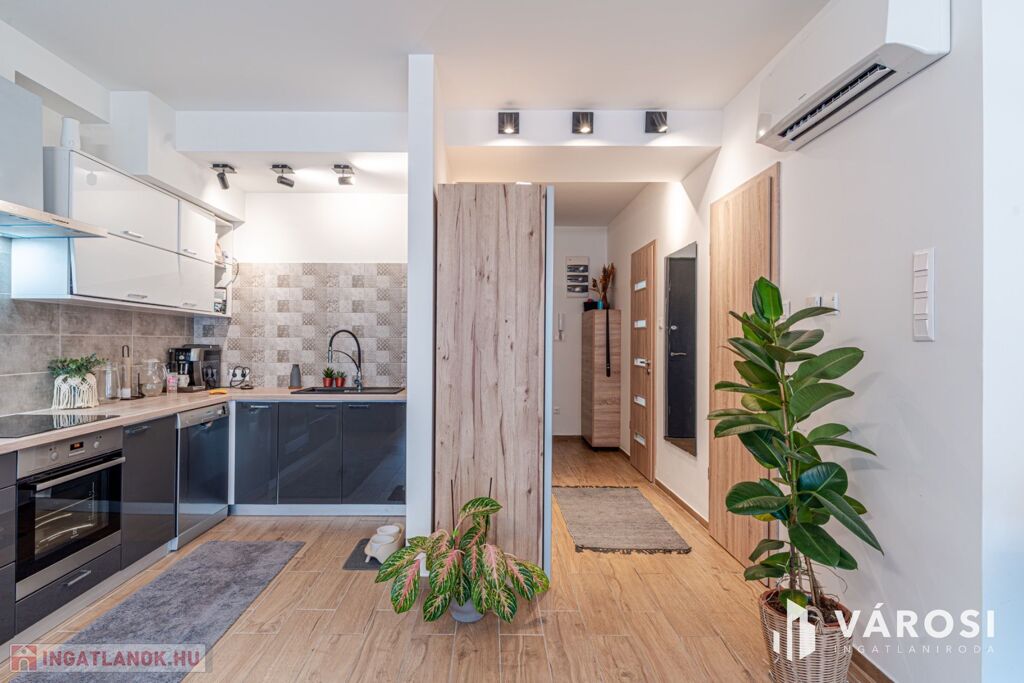 Szeged Felsőváros városrészében, a Rom utcában, eladó, egy 2022 - ben épült ELSŐ emeleti, FIATAL ÚJSZERŰ állapotú 60 nm - es, tégla építésű, amerikai konyhás nappalival, plusz egy szobával, és hatalmas erkéllyel (10 m2) rendelkező lakás. A lakás mellé külön mélygarázsi parkolóhely is megvásárolható.