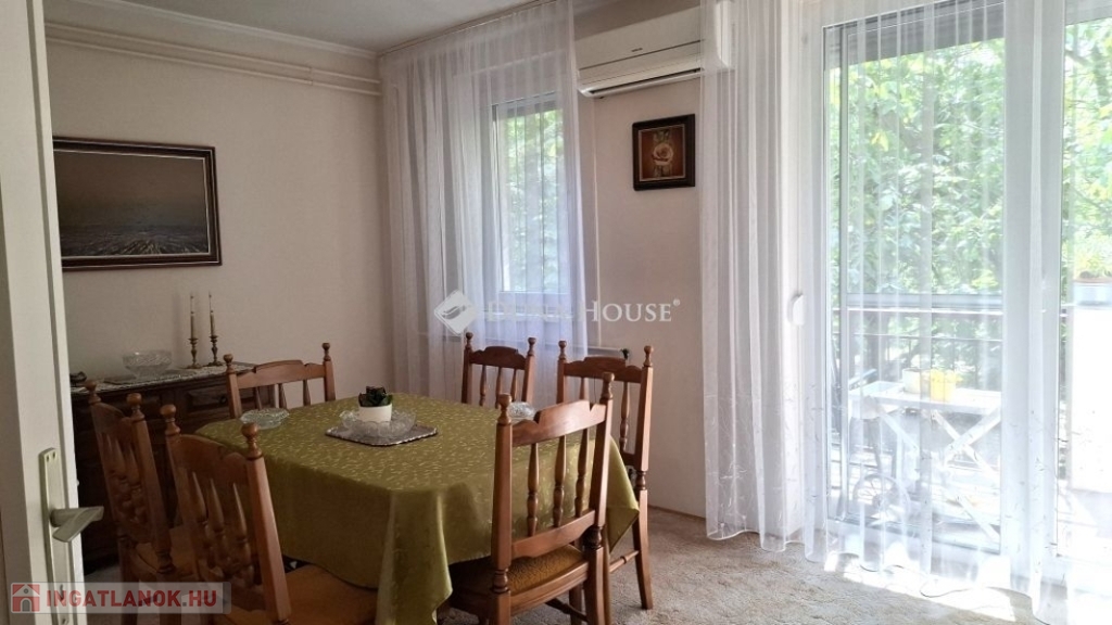 A két déli fekvésű szoba és az erkély a társasház fás belső udvarára néz. A jelenleg étkezőként használt nagyobb szoba két ajtóval rendelkezik, így 2 szükség esetén két kis szobává alakítható.