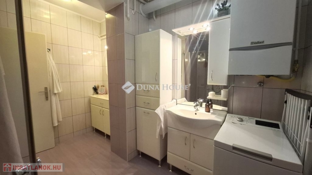 A konyha mellett 2020-ban teljeskörű felújításon esett át a fürdőszobába, amelyben épített zuhanykabin, mosdó, beépített bidés WC, elektromos törölközőszárító van és a megfelelő páratartalomról beépített páraelszívó gondoskodik.
