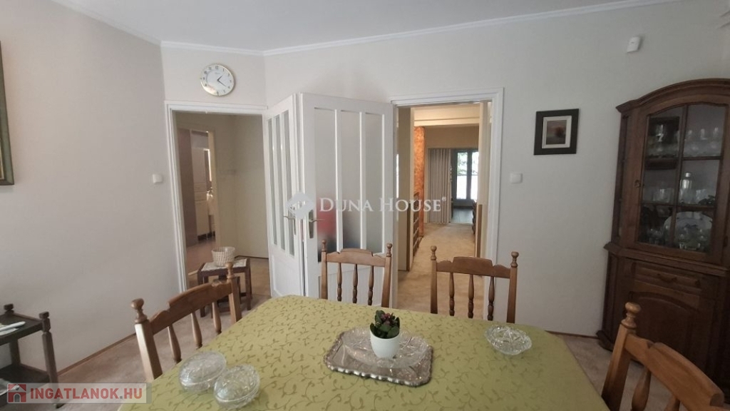 A nappali, a szobák, a közlekedő szép állapotban lévő tölgyfa parkettával burkoltak, amit jelenleg le nem ragasztott szőnyegpadló véd.
