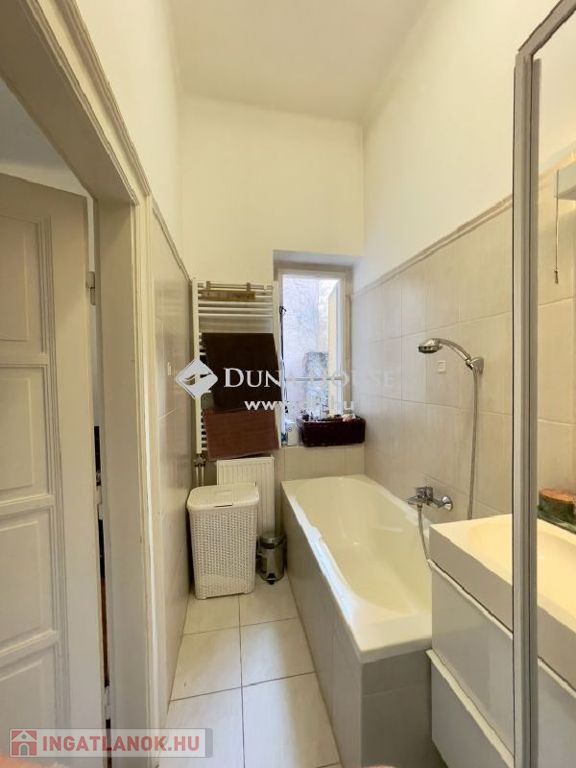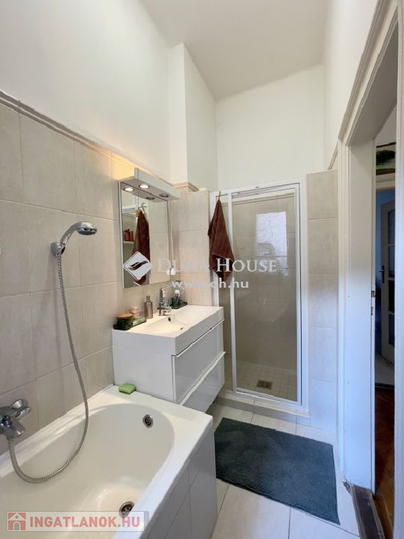 Az igényesen kialakított fürdőszobába kád, zuhanykabin, mosdószekrény kerültek beépítésre. A mellékhelyiség szeparált, kézmosóval ellátott.