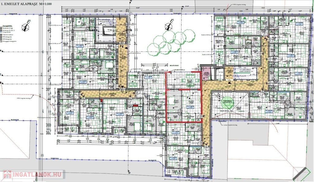 - központi hőszivattyús fűtés, egyedi méréssel, padlón keresztüli hőleadással