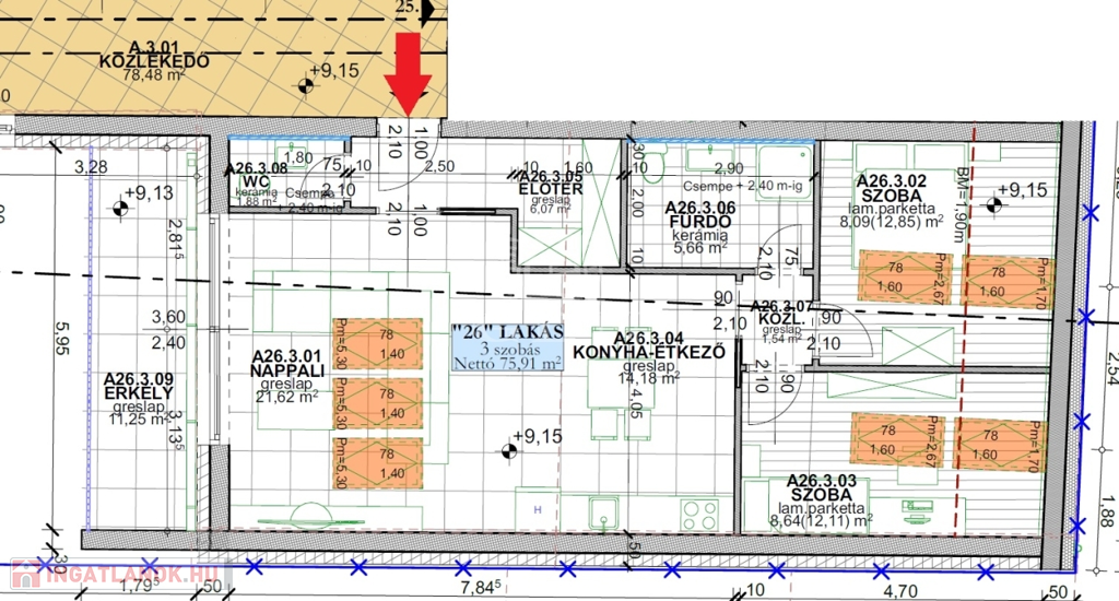 A26 lakás: 67,67 m2|konyha + étkező - nappali, 2 hálószoba, előtér, fürdő + wc, vendég wc, 11,25 m2 erkély Eladási ár: 117.272.000 Ft