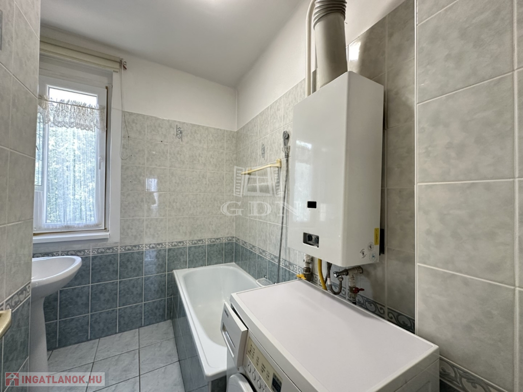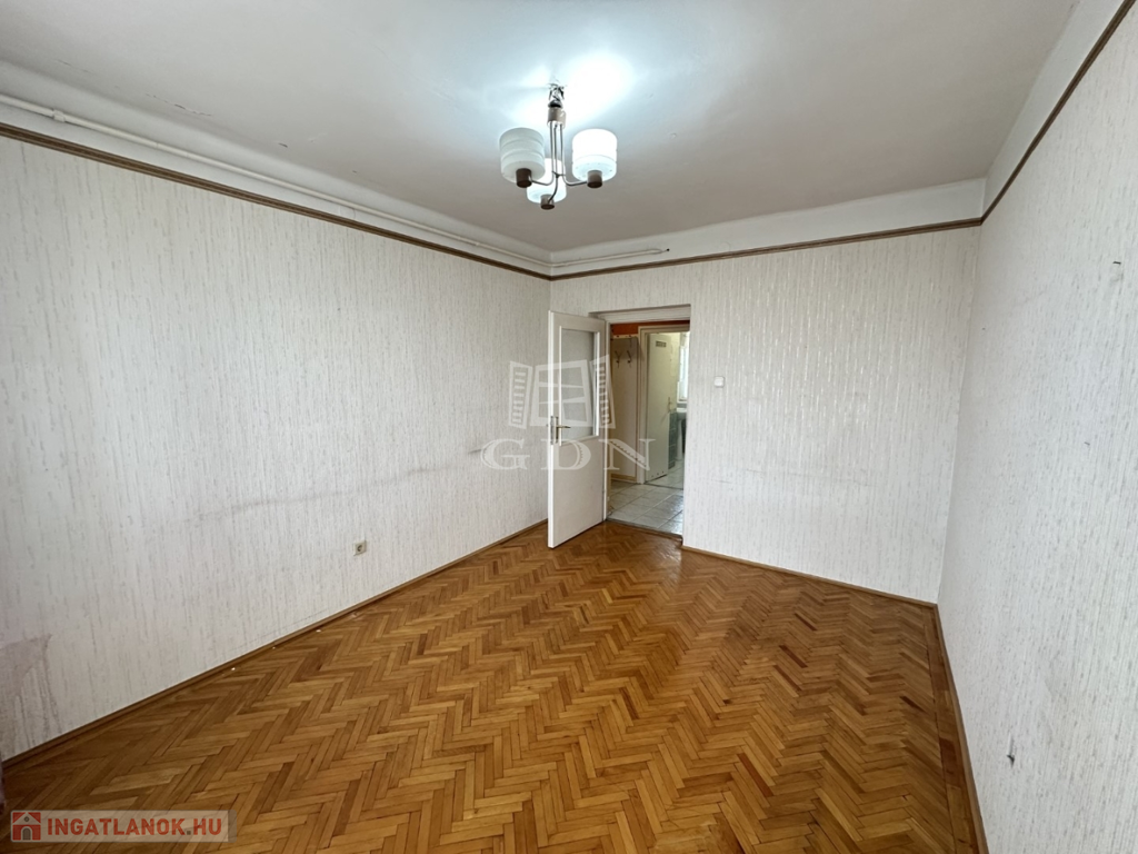 Az ablakok újak, műanyag hőszigetelt kivéve az erkélyes szobán, rajtuk redőny található. A szobákban jó állpotú fa parketta, a konyha, közlekedő valamint kádas fürdő és a külön nyíló wc járólap burkolatot kapott.