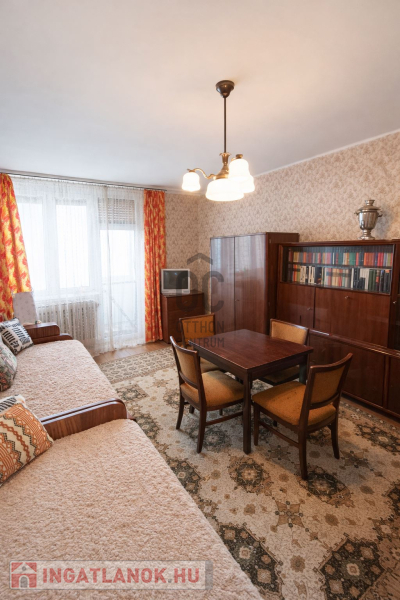 A lakás elrendezése kiváló: a két szobán kívül egy tágas előszoba-közlekedő, tároló, kamra, konyha-étkező, valamint fürdőszoba WC-vel is helyet kapott. Az erkélyről és az ablakokból minden irányba szép panoráma nyílik a városra.