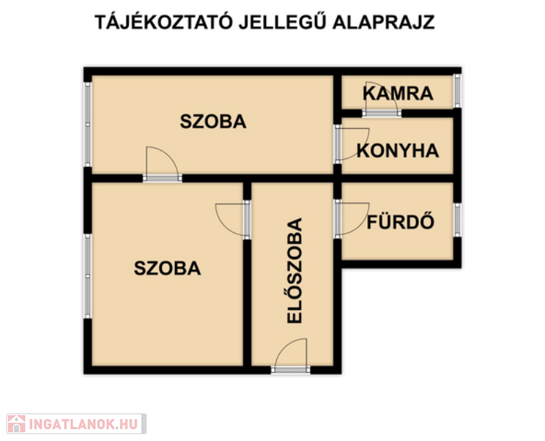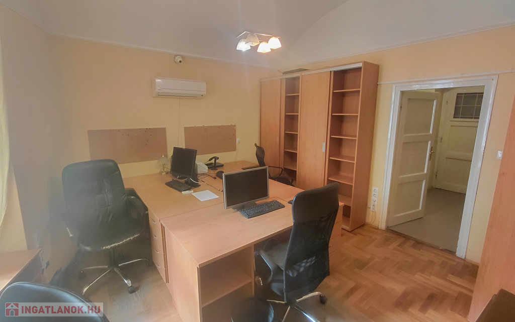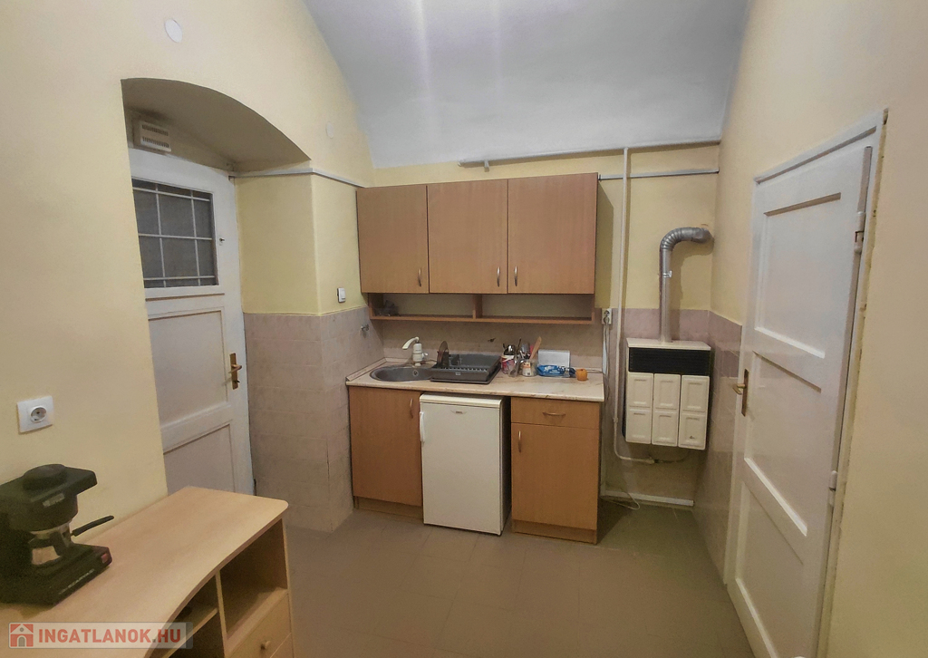 A téglaépítésű, két szobás ingatlan egyedi belső elrendezésének köszönhetően sajátos hangulatot teremt. A széles előszobából egy szoba nyílik, innen juthatunk tovább a másik szobába, majd a belső konyhába. Az egymásból nyíló terek elrendezése nyugodt, zavartalan atmoszférát teremt, legyen szó otthonról, irodáról vagy akár rendelőről.