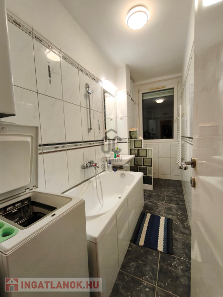 A lakás jó állapotú, esztétikailag és műszakilag felújított, a villanyvezetékek és víz,- szennyvízvezetékek cserélve lettek, a konyha és a fürdőszoba is teljeskörű felújításra került. Négy éve új biztonsági bejárati ajtó, valamint egy hűtő-fűtő klíma lett felszerelve, hogy a meleg nyári napokon is kellemes legyen a lakásban a hőmérséklet! Az ablakok redőnnyel és szúnyoghálóval is felszereltek. A meleg vizet egy kb. 15 éves átfolyós Ariston gázkazán szolgáltatja. A folyosóról minden helyiség külön megközelíthető. A szobákban fa parketta a többi helyiségben járólap burkolat található. A lakáshoz saját tároló tartozik a pincében. Az épület részt vett a teljes panelprogramban, műanyag nyílászárókkal ellátott. Közös költség: 13.200,-Ft.
