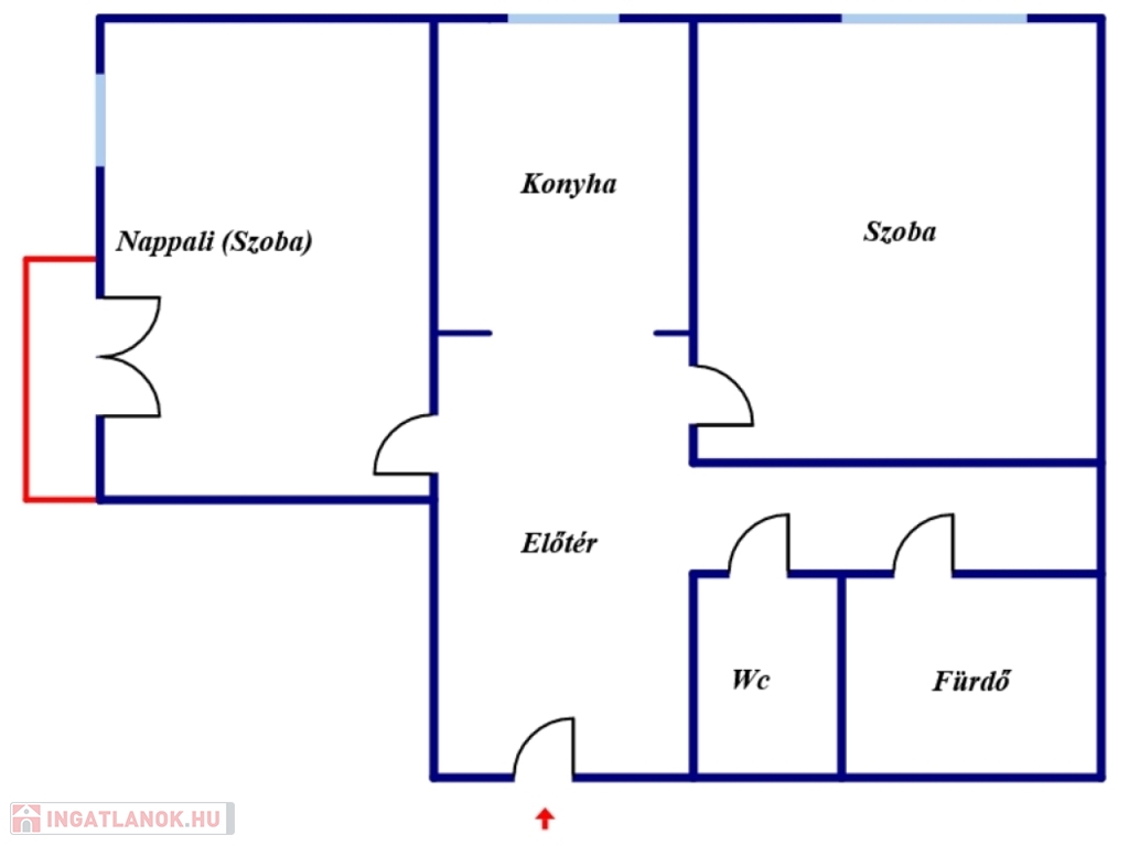 Az épületbe a bejutás akadálymentesen megoldott. Az előtér, konyha, kádas fürdő, WC járólappal, a 2 különálló szoba pedig laminált padlóval és burkolt.