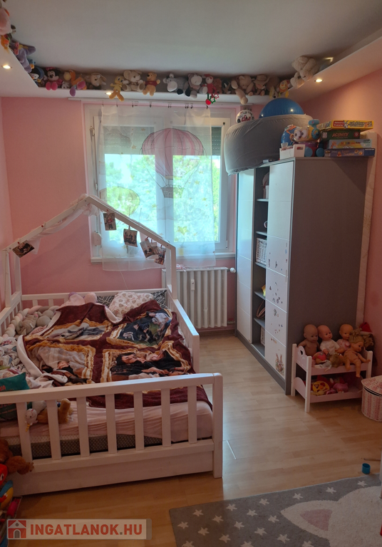 A három külön nyíló szoba ideális elrendezést biztosít családok számára, hiszen mindenki számára kialakítható egy saját, nyugodt élettér – legyen szó hálószobáról, dolgozószobáról vagy gyerekszobáról. Az otthon elhelyezkedése igazán különleges: csendes, fás, parkos környezet öleli körül, miközben a belváros és a vasútállomás is csupán tíz percnyi sétára található. A közelben óvoda, iskola, gyógyszertár, orvosi rendelő és bevásárló központ is elérhető, így a mindennapi élethez szükséges intézmények karnyújtásnyira vannak.