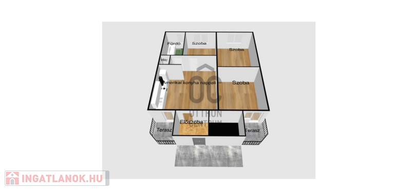 A három szobán kívül, a 100m2-en a lakás magában foglal egy hatalmas amerikaikonyha-nappalit, egy tágas előszobát, egy fürdőszobát, egy mellékhelyiséget és kettő erkélyt.