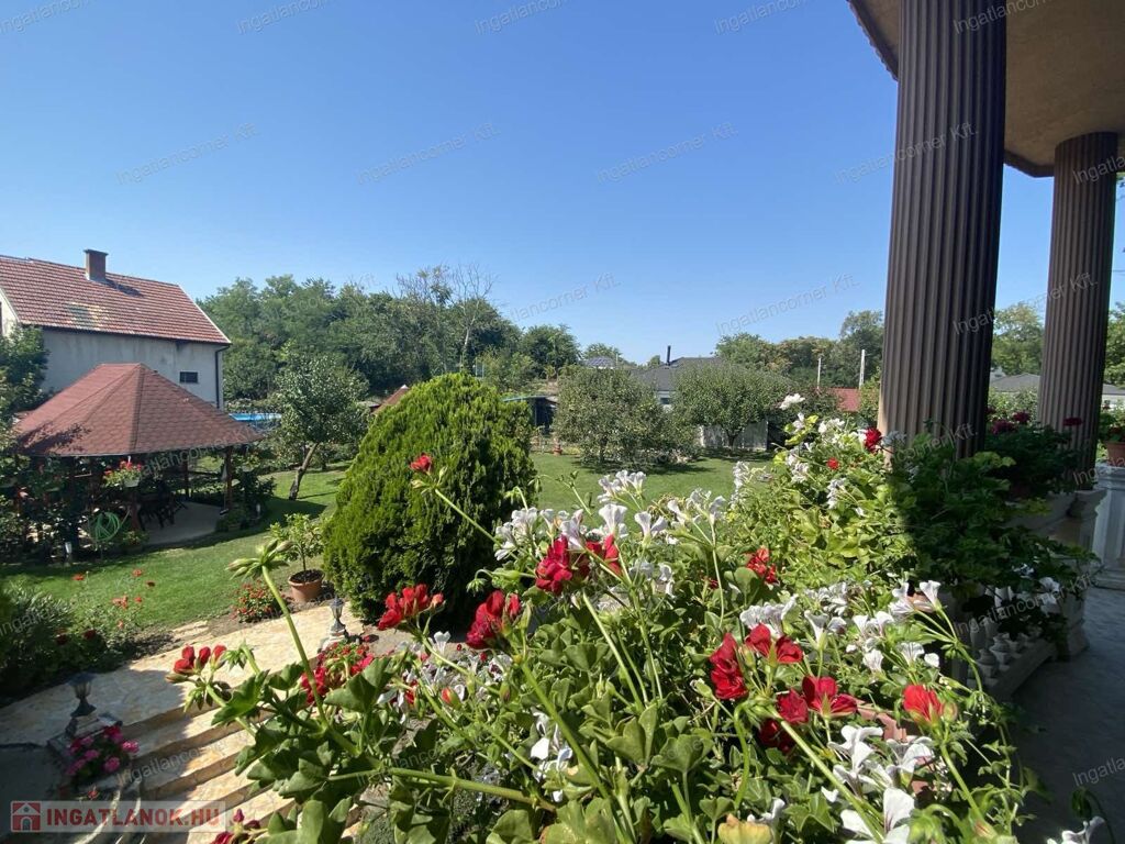 A hatalmas udvar gyönyörűen parkosított, termő gyümölcsfákkal beültetett. ( sárgabarack, őszibarack, szilva, szőlő stb)egy nagy kerti tó ékesíti a hátsó részt, tele szebbnél szebb halakkal.