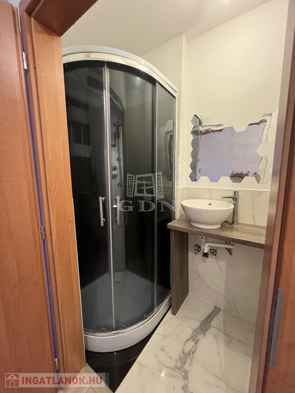Konyhája beépítetlen, belőle nyíló fürdőszoba zuhanyzós.