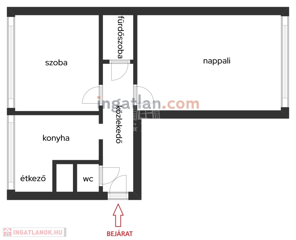 - az 57 m2-es lakás áll két tágas szobából, egy konyhából amely egy helyiségben található az étkezővel, fürdőszobából, külön WC-ből, valamint egy közlekedőből