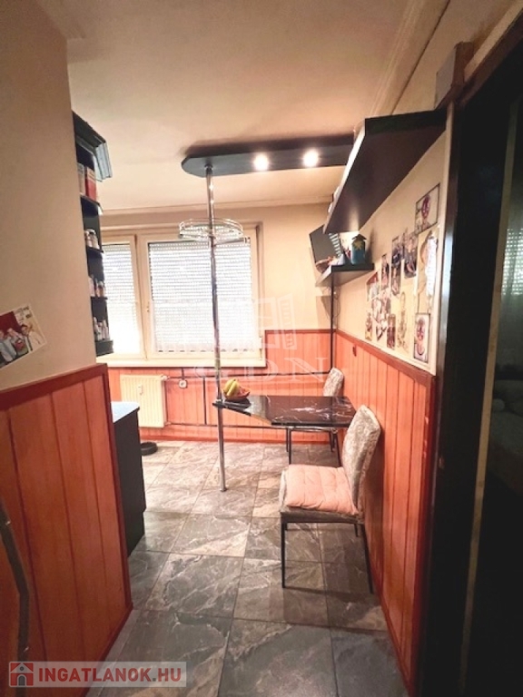 A beépített konyhabútor gépesítve, és a beépített bútorok a vételár részét képezik. A lakáshoz közös használatú tároló tartozik.