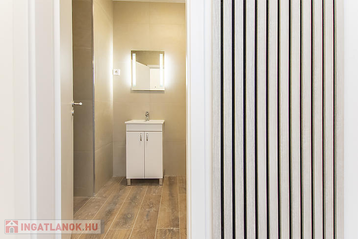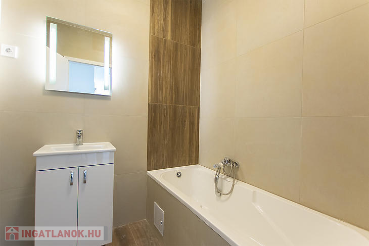 A lakás frissen felújított, igényes anyagokkal, letisztult, mégis karakteres dizájnnal. A tágas nappali és a konyha egy légteret alkotnak, így kellemes, otthonos tér jött létre. A fürdő és a WC külön helyiségben található, ami tovább növeli a kényelmet és praktikusságot.