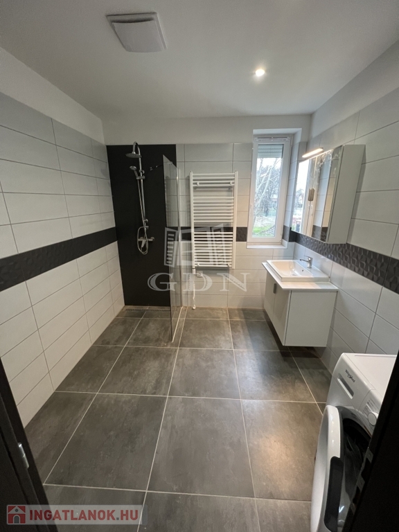 A fürdőszobában és a WC-ben hőszivattyús padlófűtés és elektromos törölközőszárító gondoskodik a komfortérzetről.