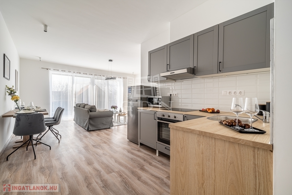 Szigetszentmiklós-Lakihegyen új építésű exkluzív lakóparkban, a II. ütemben megvalósult “C” épületben kínálunk eladásra, egy FÖLDSZINTI KERTKAPCSOLATOS nettó hasznos 64,85 m² lakóterületű nappali + 2 szobás új építésű lakást, 5,28 m² terasszal.