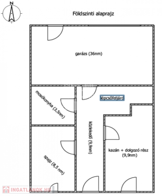 - kazánhelyiség (a helyiség méretei és világos ablakkal rendelkező adottsága miatt egy külön dolgozó szoba is itt kapott helyet),